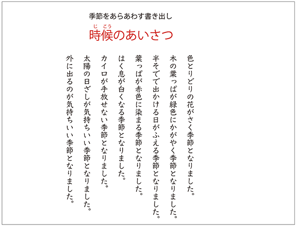 ↓先生「こういった季節のあいさつを「時候のあいさつ」といいます。」